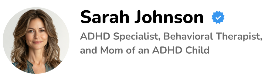 Created by Sarah Johnson – ADHD specialist, behavioral therapist, and mom of an ADHD child who has helped more than 38,000 families turn chaos into calm...